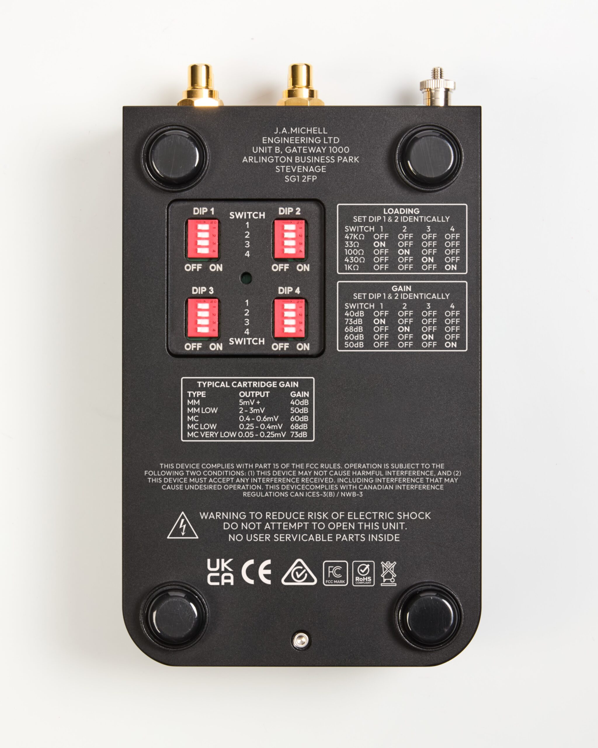 Introducing the Michell Apollo powered by Muse, this is a reference two-box phono stage that really has to be experienced. The Apollo is compatible with both moving magnet + moving coil cartridges. With the hidden but easy accessible dip switches you have the opportunity to fine tune the load/gain settings to perfectly match any MM + MC cartridge (see images below).